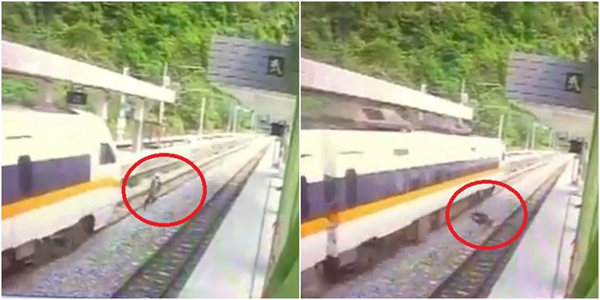 驚險畫面曝光!工人違規穿越軌道,被臺鐵列車擦撞倒地