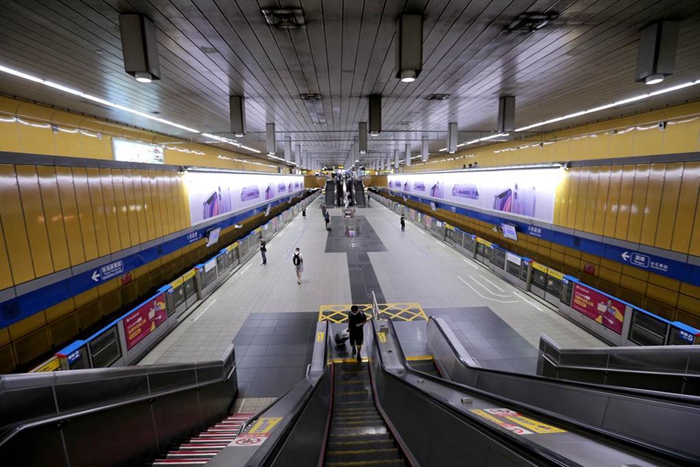 16日下午2時的臺北地鐵板南線市政府站僅零星民眾搭乘。(圖片來源:臺灣“中時新聞網”)