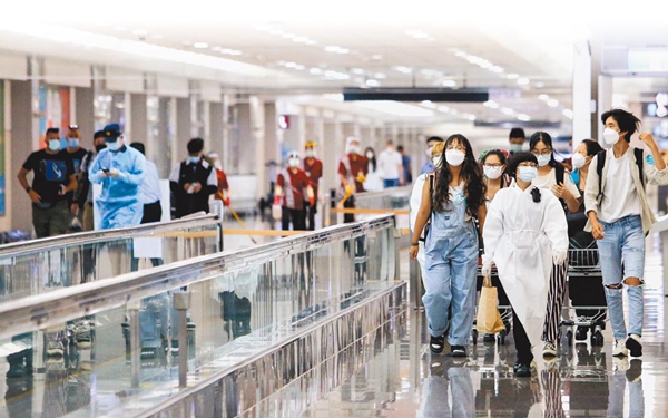 圖為高風險地區入境臺灣旅客,由防疫人員核實入境檢疫資料后,送入住集中檢疫所。(圖片來源:臺灣“中時新聞網”)