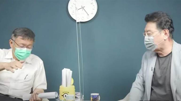 7日,臺北市長柯文哲上臺資深媒體人趙少康直播節目。(圖片來源:臺灣“中時新聞網”