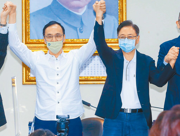 中國國民黨18日召開中常會,征召張善政(右)參選桃園市長。(圖片來源:臺灣“中時新聞網”)