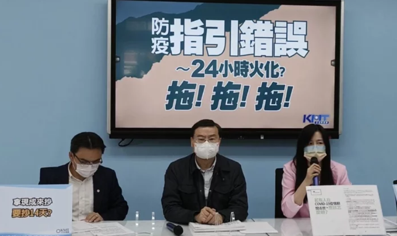 中國國民黨團書記長萬美玲指出,從6月5日陳時中首度稱“從未規定確診亡者要在24小時內火化”,到8日陳時中指示臺“內政部”盡速找業者溝通訂定指引,到12日已經累計4171人染疫死亡,新指引拖這么多天,上周平均每天就新增一百多個家庭承受心理煎熬,卻無地方可申訴。