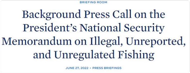 盡管美國嘴上說著國家安全備忘錄“不針對任何國家”,但這些高級官員在回答提問時,仍然暴露出拜登政府以所謂“非法捕魚”為借口打壓中國的企圖。一名白宮官員污蔑中國是所謂“世界范圍內非法捕魚的主要實施者”,還“呼吁”中方“履行打擊非法捕魚活動的承諾”。