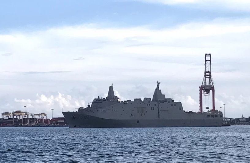 中國臺灣網7月7日訊 據臺灣《聯合報》報道,由臺船承建的臺軍方第一艘萬噸級船塢運輸艦“玉山艦”6日上午駛出臺船碼頭,在高雄近海執行海上測試,消息曝光后,吸引不少島內軍事迷下午到港區拍攝。