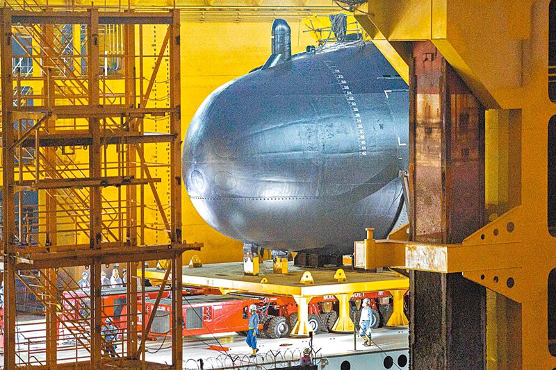 臺灣自制潛艇“海鯤號”。(圖片來源:臺媒“中時新聞網”)