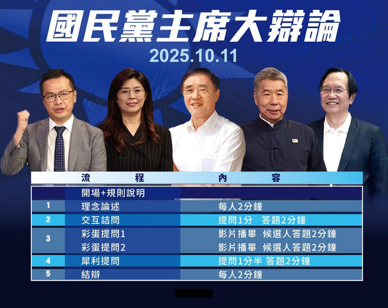 中國臺灣網10月9日訊 據臺媒“中時新聞網”報道,中國國民黨主席選舉投票前最后一場辯論會,將在10月11日星期六下午2點舉行。