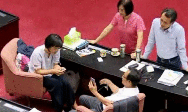 話說雖然一旦正式“開戰(zhàn)”,藍(lán)綠民代就像炸了毛的獅子一樣針尖對(duì)麥芒的糾扯個(gè)不停,堅(jiān)決秉持“能動(dòng)手就少動(dòng)口”之原則,但休息時(shí)的他們看著還是一片“大合樂”的場(chǎng)景,紛紛開啟了“茶話會(huì)”的模式~