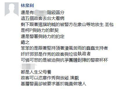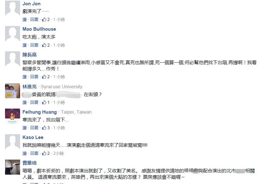 據(jù)臺灣《中時電子報》報道,黃國昌稍早時還在臉譜網(wǎng)(facebook)表示,“很久很久沒有如此難過”,不是因為全身濕冷、不是因為超過40小時未進食、而是因為本來以為2016改變已經(jīng)發(fā)生,“沒有想到我所熱愛的臺灣權柄的濫用,竟然依舊如此冷酷”;而當警方不斷柔性勸導其早點“離開休息”時,他又反唇相譏“你不要再演戲了”!