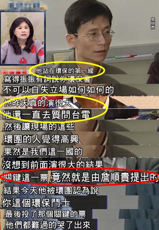 據悉,在當天的審查現場,詹順貴先是假模假樣地質疑臺電,讓環團抱持希望,沒想到所有的前戲都是為了最后的“關鍵贊同票”,氣得環團直哭,前臺北市副市長李永萍不禁痛批詹“真的演很大”!