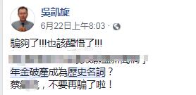 換言之,除軍改外,最迫在眉睫的就是勞保的改革,但如今這一“最難的難題”還未攻克,蔡英文怎么就能說出“未來‘年金破產’將成歷史名詞”這句話呢?這到底是騙自己還是把全臺灣民眾當傻子呢?
