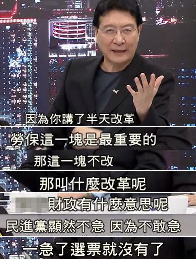 現任民進黨“立法院”黨團總召柯建銘也直言,沒有哪一個政黨想要趕快處理勞保年改,“這件事還沒有急到這種程度”。