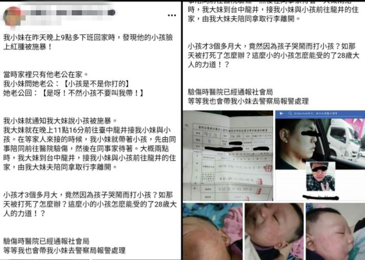 網友說道:“小孩才3個多月大,竟然因為孩子哭鬧而打小孩?如那天被打死了怎么辦?這么小的小孩怎么能受的了28歲大人的力道!?”驗傷時醫院已經通報社會局報警處理。