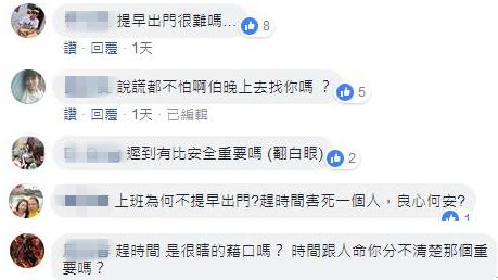 對(duì)此,網(wǎng)友紛紛指責(zé)該男子:“上班為何不提早出門?趕時(shí)間害死一個(gè)人,良心何安?”“說(shuō)謊不怕阿伯晚上去找你嗎?”“時(shí)間跟人命你分不清楚哪個(gè)重要嗎?”。