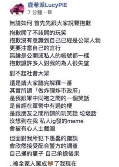 他表示,這篇文章是他在未公開的群組內發文,用語也都是好友間平日聊天時才會用的夸張語法,其實并沒有要炸彈臺北市政府的動機,但不想會被人公布,造成這么大的風波……