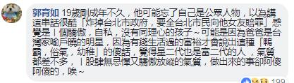 而盡管吳睿軒道了歉,但他的行為還是既不被部分網友認可,也沒得到老爸的原諒……有網友直言“沒有你爸的光環,你屁都不是”、“這是存心要害死他老爸”!