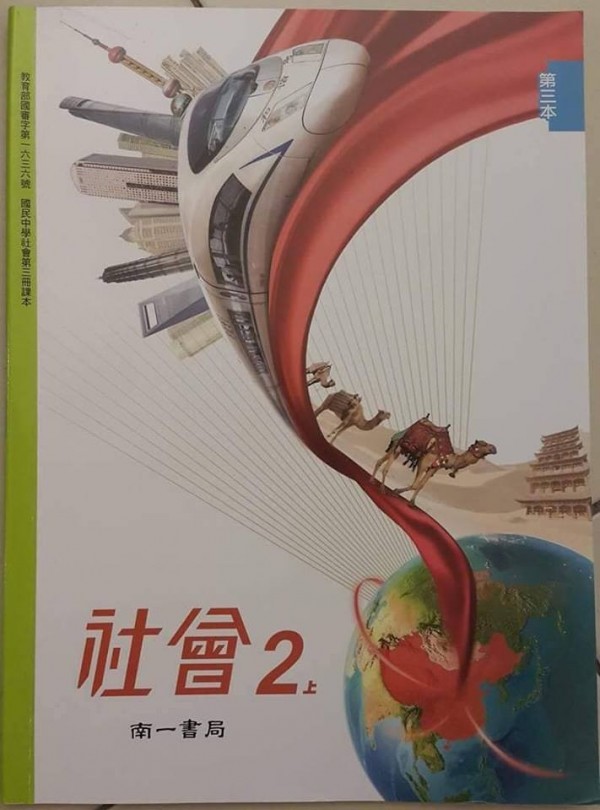 事情是這樣?jì)饍旱危_(tái)灣南一書局的初二社會(huì)課本封面,使用了大陸高鐵、上海東方明珠塔等圖像,竟然被臺(tái)北教育大學(xué)名譽(yù)教授李筱峰說(shuō)像大陸的“政治宣傳海報(bào)”,并認(rèn)為“封面不須如此吹捧中國(guó)”。