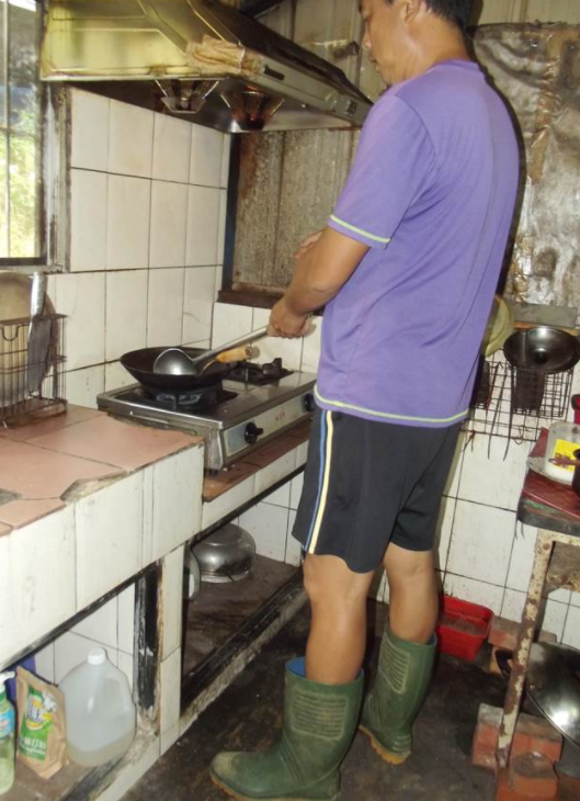 何姓村民的住家是傳統磚造房,一旁的鐵皮屋充作廚房和飯廳,也是多年來不斷電人的區域。何姓村民說,因處處有埋伏,除非要煮餐食,否則家人絕對不輕易進廚房,包括洗碗要特別小心,甚至得拿木柄大湯勺來關水龍頭,才不會被電到。