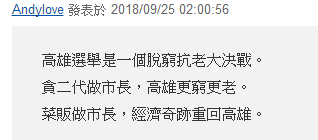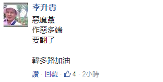 有網(wǎng)友力挺韓國瑜,為他打氣加油,當然也沒忘了撒一把陳其邁的家族黑料: