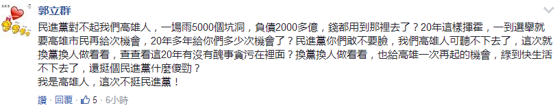還有高雄市民加入進來,痛批綠營在高雄執(zhí)政多年,綠到快生活不下去了!網(wǎng)友明確表示,我是高雄人,這次不挺民進黨: