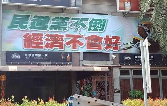 高雄某知名餐廳曾在門口掛上“民進(jìn)黨不倒 經(jīng)濟(jì)不會(huì)好”海報(bào)。