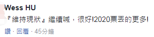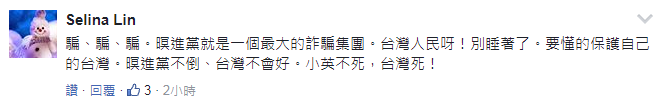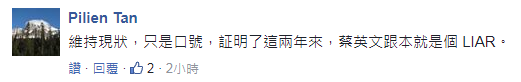 而針對(duì)蔡女士“寧折不彎”的做法,島內(nèi)網(wǎng)友也紛紛為其豎起大拇哥,“請(qǐng)繼續(xù)‘維持現(xiàn)狀’,2020就讓你明白‘現(xiàn)狀為何’!”;還有人表示,“聽小英喊了兩年口號(hào),現(xiàn)在才知道,原來她就是個(gè)騙子!”看到這里,二仔不免要吐槽一句:兄弟,你有點(diǎn)兒后知后覺了……