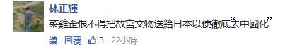 還有人擔心文物會在搬移的過程中“莫名跑到日本”,畢竟蔡英文“恨不得把整個故宮的文物都送給日本以便徹底‘去中’”……