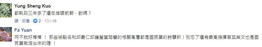 “民進黨出包拉國民黨當墊背也不是新鮮事”,臺灣《中國時報》在評論文章中指出,蔡英文已執政3年,如果明知不法,還要把問題都推給前朝,這種爭功諉過的態度既不負責任,更看不出虛心檢討之意。