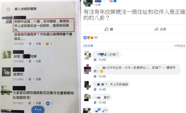 有退軍反應,通知函地址正確,但姓名非本人,或是連地址都錯誤,甚至級職也算錯,讓年金大打折扣;許多郵差也抱怨,明明到了收件地址投,但收件人都是無此人,沒一張投遞成功,錯誤率100%,“送到懷疑人生”;也有人質(zhì)疑,“不知道以后彈頭會不會裝反?”