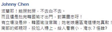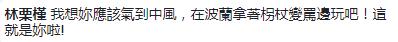 網友們紛紛留言“她現在豈不瘋掉了,淹大水耶!是全部南臺灣呢!”“邱大‘委員’這次怎么沒有講快要中風,你是以黨論黨嗎?”“氣到趕快去波蘭狂歡來壓壓驚咩”“你怎么不罵了?難不成你中風了?丟臉啊!薄艾F世報來的真快啊”“一個旗山人跑去金門玩,一個旗山‘立委’跑去波蘭玩,不知道這次屏東女兒要砸幾臺電視呢?”