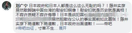 有網(wǎng)友留言向日本喊話:你們對(duì)慰安婦還沒正式道歉跟補(bǔ)償。中國(guó)人民不介意讓這件事成為國(guó)際對(duì)日本慰安婦的撻伐先鋒!
