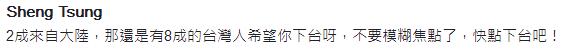 還有網(wǎng)友表示,就算2成來自大陸,那還有8成臺(tái)灣人希望你下臺(tái)!