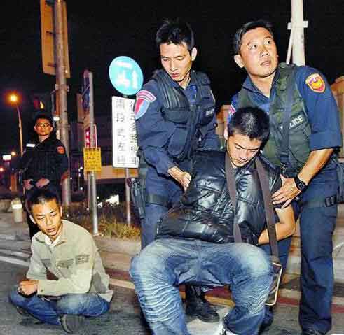 高雄市警方昨凌晨攔查一部闖紅燈的家用小客車,逮捕楊姓軍人(右)。圖片來源:臺灣《蘋果日報》
