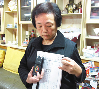 江國慶母親王彩蓮29日展示江國慶寄回家的信和江父生前買的電擊棒,證明兒子信中指遭到刑訊逼供不是說謊。來源:臺灣《聯(lián)合報》