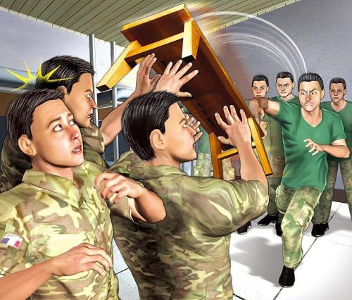 上月23日晚上8時許,許姓班長又要求新兵全部到中山室坐好,再玩起5分鐘一個動作的訓練,外號“水!钡男卤攬鲩_罵,其他班長立即要求新兵回寢室,當下雖有人回寢室,但卻有人留下來圍觀,還有人叫囂。過程中9名新兵有人將板凳砸向許姓班長,被其他班長擋下,也有人與班長推擠,沖突中多人掛彩。在場新兵形容“沖突狀況跟暴動沒有兩樣”。此事驚動臺軍連長、營長緊急出面處置,事態才沒有擴大。