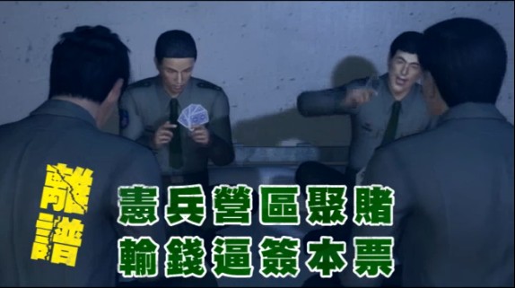 報(bào)道指出,駐守松山機(jī)場的臺(tái)軍憲兵202指揮部350營,4名士官就寢后玩撲克牌“大老二”,為免出現(xiàn)賭資混亂,還用記點(diǎn)計(jì)算輸贏,曾姓士官因輸了近4萬元。當(dāng)其他3人要求付錢時(shí),曾表明沒錢,另一名士官怕曾賴帳,要求曾簽本票。曾簽完本票后,質(zhì)疑自己遭詐賭,向營長自首。