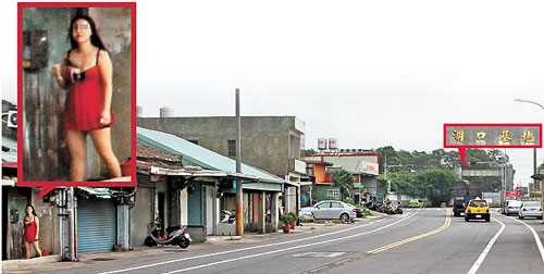 新竹湖口基地裝甲部隊墻外不遠處就是私娼寮,11日有疑似私娼的女子在拉客。
