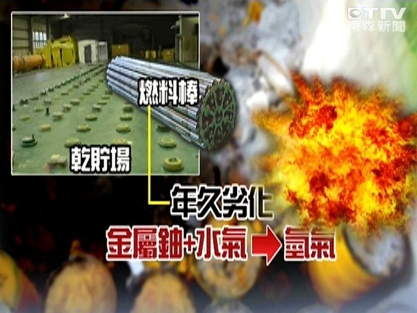 臺灣發(fā)展核武曝光后,在美方強烈要求下,當(dāng)時不只反應(yīng)器,所有用來提煉核武原料的燃料棒也準(zhǔn)備一并運回美國。處理過程中因部分燃料棒護(hù)套年久劣化,燃料棒中的金屬鈾跟水氣經(jīng)過擦撞產(chǎn)生氫氣,6度引發(fā)氫爆。雖然之后灌漿封閉實驗室,但氫爆后放射性物質(zhì)已流到核研所下方土地。
