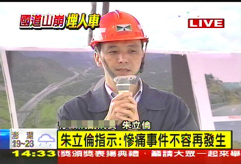 中國臺灣網4月27日消息 據臺灣TVBS新聞報道,臺灣三號高速公路發生山體滑坡意外,已經48小時,臺當局“行政院副院長”朱立倫,下午來到現場進行勘查,不過在慰問完家屬之后,隨即離開第一線,退到后方聽簡報,轉述臺灣地區領導人馬英九的指示,將全面清查國道順向坡路段。