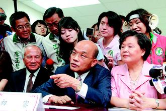 中國臺灣網9月16日消息 綜合臺灣媒體報道,臺灣“五都” 選舉(臺北縣升格后的新北市、臺北市、縣市合并后的大臺中市、大臺南市和大高雄市)開戰后,蘇貞昌、蔡英文的心結始終是國民黨質疑的目標。15日,由前民進黨主席許信良擔任董事長的臺灣“美麗島電子報”,刊登一篇名為《2012,蘇貞昌確定出局》的文章,直指臺北巿長參選人蘇貞昌太太詹秀齡日前“如果蘇沒有選上市長,支持他選臺灣地區領導人”的話是故意的,因新北市長參選人蔡英文陣營2名大將私下研擬“蔡到底要選真的還是選假的”的策略,蘇貞昌只好透過太太“明志”。