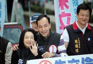 據(jù)臺灣“今日新聞網(wǎng)”報道,臺北縣長周錫瑋24日與國民黨新北市長候選人朱立倫夫婦進行車隊掃街拜票,全力沖刺爭取選民投票支持。