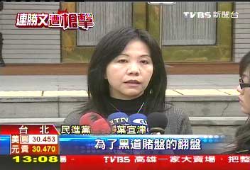 報道指出,葉宜津的言論立即讓爭議發酵,隔天葉宜津親自出面澄清:“我從來沒有說,連勝文先生有什么不是的,社會大眾也強調質疑,這是不是黑道為了黑道賭盤的翻盤,而去導出這一場戲。”