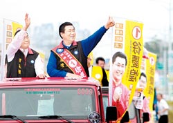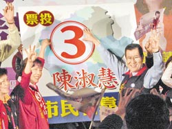 蕭萬長(右)為國民黨籍“立委”參選人陳淑慧站臺。圖片來源:臺灣《中國時報》