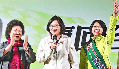 蔡英文(中)為民進黨籍“立委”參選人林岱樺站臺。圖片來自網絡