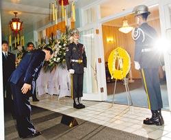 國民黨副主席、蔣經國之子蔣孝嚴前往桃園頭寮謁陵。 來源:臺灣《中國時報》