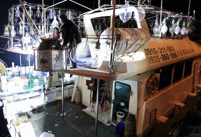 中華保釣協(xié)會計劃將媽祖神像送至釣魚島,24日凌晨搭乘漁船從瑞芳深澳漁港出發(fā)前,臺當局“海巡署”檢驗相關(guān)報關(guān)程序。圖自臺媒