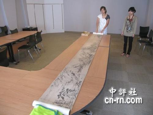 臺北“故宮博物院”收藏的《富春山居圖》長度639.9公分,寬度33公分。(中評社 康子仁攝)
