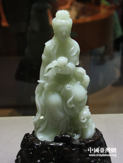 震旦館展示的觀音玉雕。(中國臺灣網 張弛 攝)
