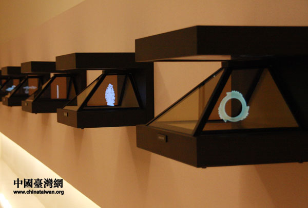 震旦館展示的玉器360度全息影像。(中國臺灣網 鐘寶華 攝)