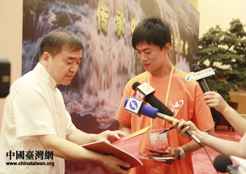 中國臺灣網7月12日北京消息 “自來到展廳,我就一直待在景泰藍手工藝品展區,和鐘師傅探討有關景泰藍與建筑美學的問題!眮碜耘_灣成功大學建筑研究所的姚伯勛博士生告訴記者。主修建筑學的他對景泰藍頗感興趣,甚至達到癡迷的程度,不論是建筑美學界,還是非物質文化遺產方面的問題,他都回答得頭頭是道。