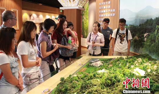 臺灣新生參觀天福石雕園。 嚴利人 攝